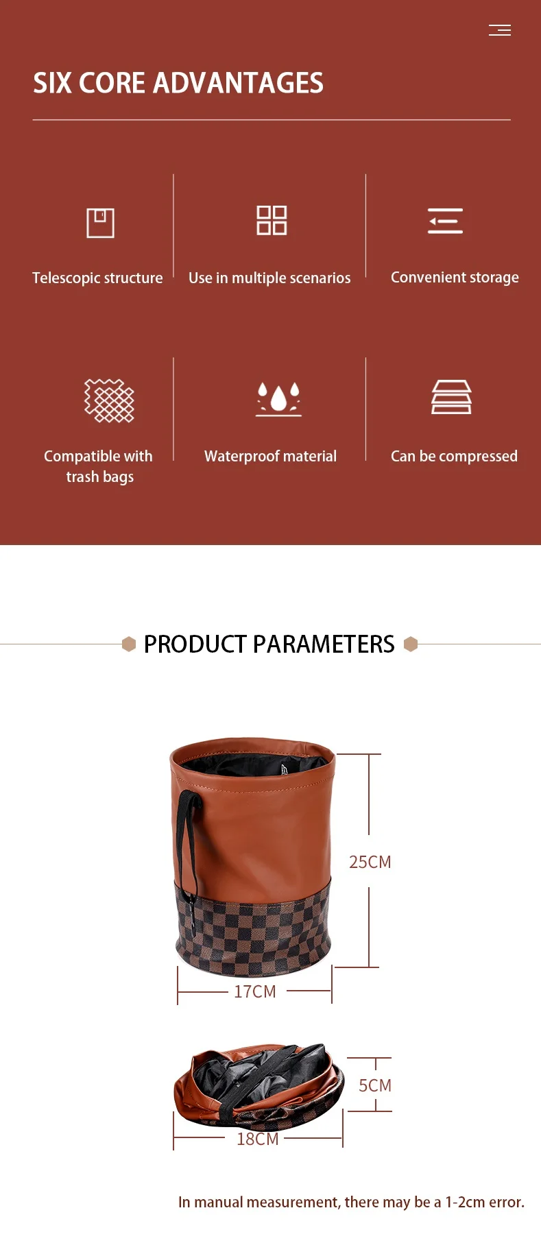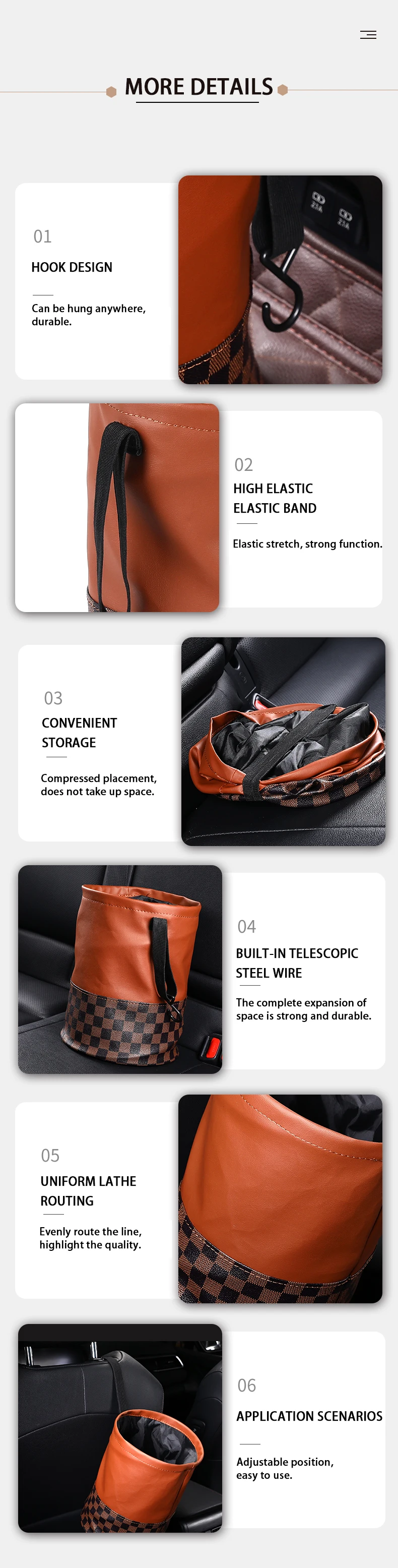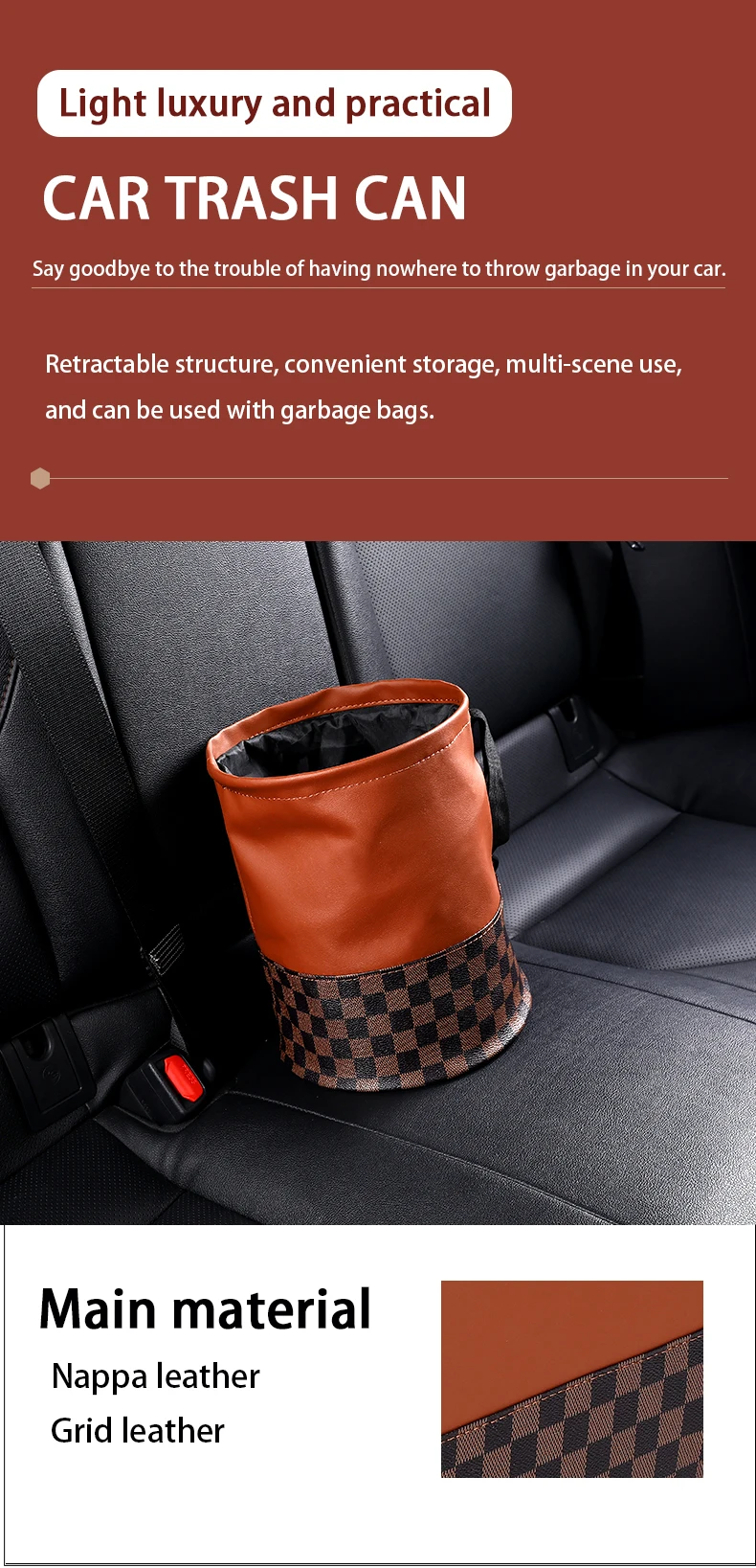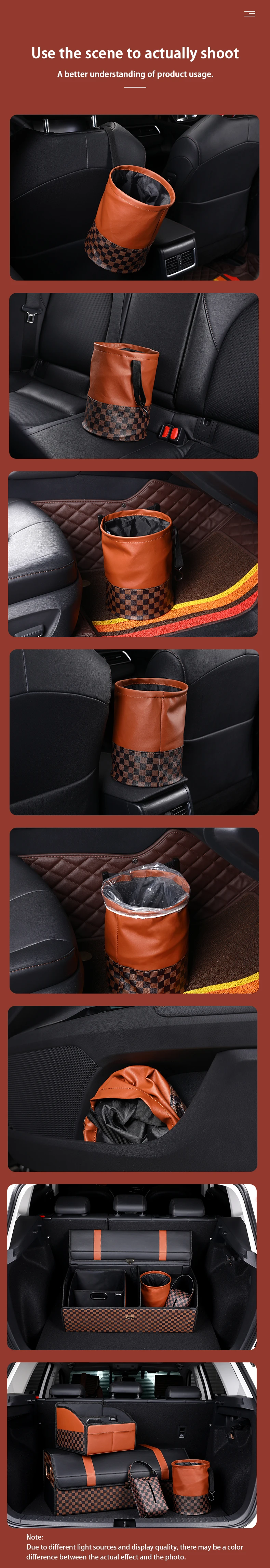Multifunctional design, the car trash can be used not only as a trash can, but also as a storage bag for storing other items, such as cups, toys, and other accessories.