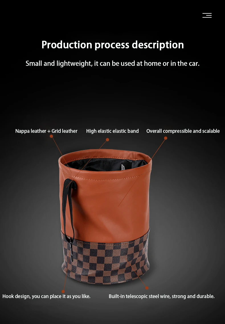 Easy to install and easy to operate, you can put our car trash can on the floor, on the car seat, or hang it on the seat back with a drawstring. With the help of an adjustable belt, the trash can be placed anywhere.