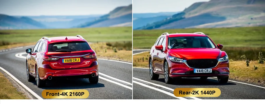 Front dash cam maintains up to 2160P resolution ,rear dash cam maintains up to 1440P resolution