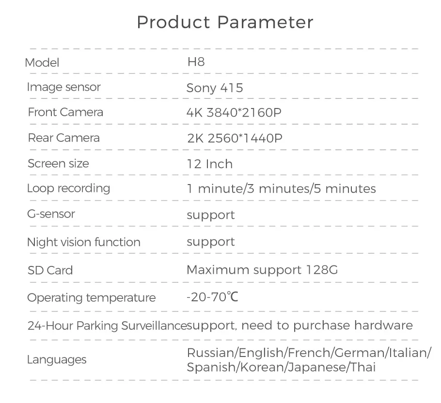 Equipped with a 170-degree wide-angle UHD(4K 2860*2160) lens, the camera can easily monitor 3 lanes. This camera has no blind spots. Enjoy your journey and achieve accurate and detailed capture.