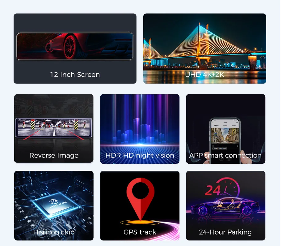 PONGKI H8 Supper UHD 4K Car Rearview Mirror Features:
